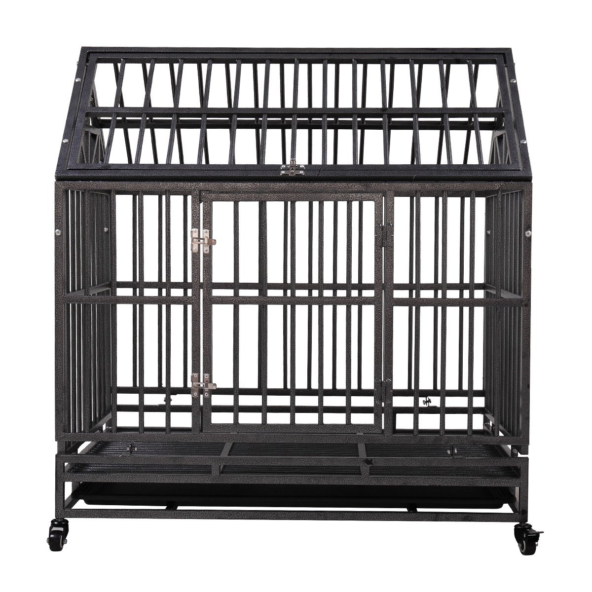 37"L x 41"H Heavy Duty Metal Dog Kennel Cage Crate with 4 Universal Wheels, Openable Pointed Top and Front Door, Black